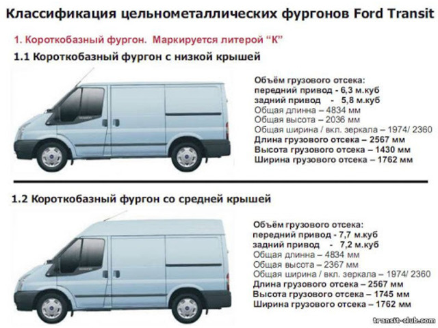 FORD TRANZIT дл.2,4 выс.1,7 110 100 90 80 11
