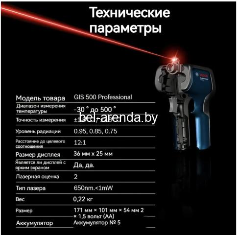 Инфракрасный термометр (пирометр) Bosch GIS 500 для профессионального измерения температуры.