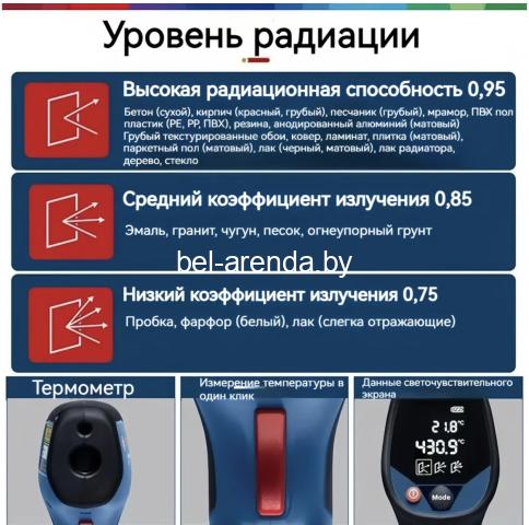 Тепловая эмиссивичность: 0,95/0,85/0,75 - точное измерение на разных материалах.