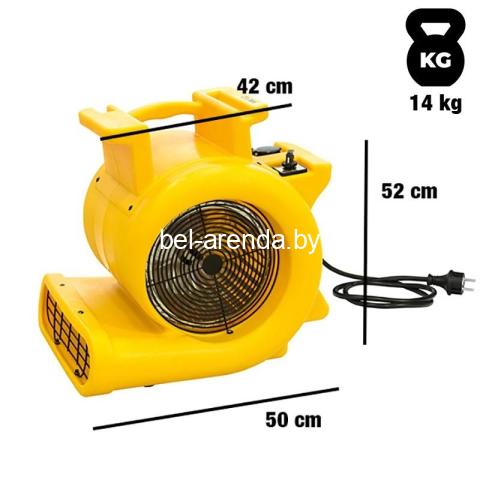Горизонтальное расположение выдува (улитка) обеспечивает «низкую» подачу воздуха и направляет его непосредственно на обдуваемую поверхность, что эффективно при сушке влажных материалов, различных напольных покрытий, будь это мокрый ковер или только что залитый монолитный пол. Вентилятор создает поток воздуха в 2640 кубометров в час.