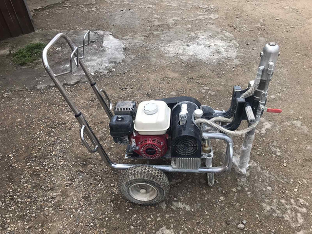 Окрасочный агрегат высокого давления. Имеет широкую область применения: нанесение битумной мастики, огнезащитных и антикоррозийных составов, шпатлёвки, гидроизоляции, пропитка строительных конструкций.