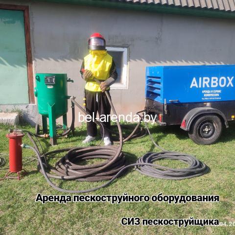дополнительная комплектация: дизельный компрессор 5 м³, полный комплект рукавов с соплом, СИЗ пескоструйщика, влагоотделитель