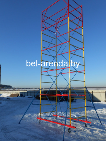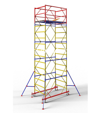 Общая высота - 7,6м; высота до настила – 6,5м; вес – 152кг. Размер рабочей площадки – 0,7х1,6м, КОМПЛЕКТ: настил с люком (650х1630) – 2шт. база в сборе(L=2м) - 2шт. объёмная диагональ(L=1,765м) – 1шт. лестница(780х1200) – 10шт. гантель(L=1,595м) – 10шт. стяжка лестницы(L=0,74м) – 40шт. лестница ограждения(780х1200) – 2шт. гантель ограждения(L=1,59м) – 2шт. стяжка секции ограждения(L=0,74м) – 8шт. перекладина ограждения(L=1,58м) – 2шт. стабилизатор в сборе (L=2м) – 4шт.