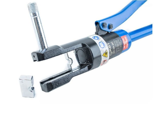 Пресс гидравлический ручной ПГРс-300 (КВТ) предназначен для опрессовки силовых медных и алюминиевых наконечников гильз. В набор входят 12 сменных матриц в комплекте. Механизм автомат. сброса давления (АСД). Клапан ручного сброса давления. Двухскоростная помпа с механизмом быстрого хода поршня. Диапазон сечений:медные наконечники 10-300 мм., для алюминиевых наконечников 16-240 мм..