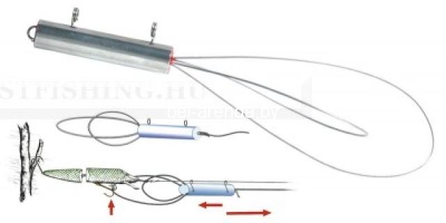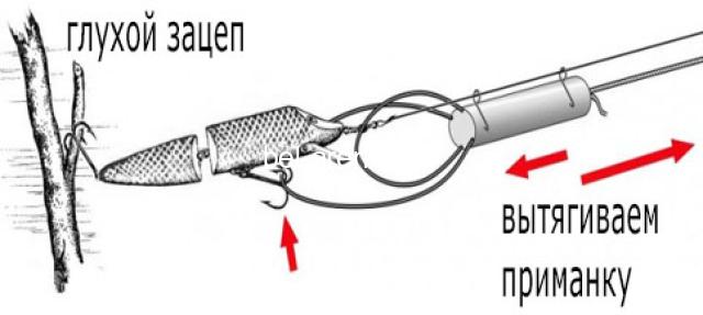 Спиннинговая лодочная рыбалка на воблеры очень часто сопряжена с зацепами приманки за разного рода донные препятствия, например, за коряги. Воблеры всегда были не самыми дешёвыми приманками и потеря каждого сильно бьет по кошельку. Потому рыболовам приходится бороться с такими неприятными явлениями, как зацепы. И ладно, если наш воблер втыкается носовой лопаткой в дно. В таких случаях достаточно проехать на лодке выше места зацепа и после нескольких рывков удилищем можно спасти воблер. То есть в данном случае мы тянем приманку в противоположную проводке сторону. И в основном, такие действия помогают. А что делать, если наша приманка уткнулась носовой лопаткой в не в дно водоема, а в коряги? И не лопатой, а одним или даже несколькими тройниками? Вот в таком случае на помощь придет специальное приспособление, которое в среде рыболовов принято называть отцеп для рыбалки.