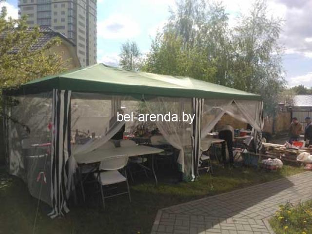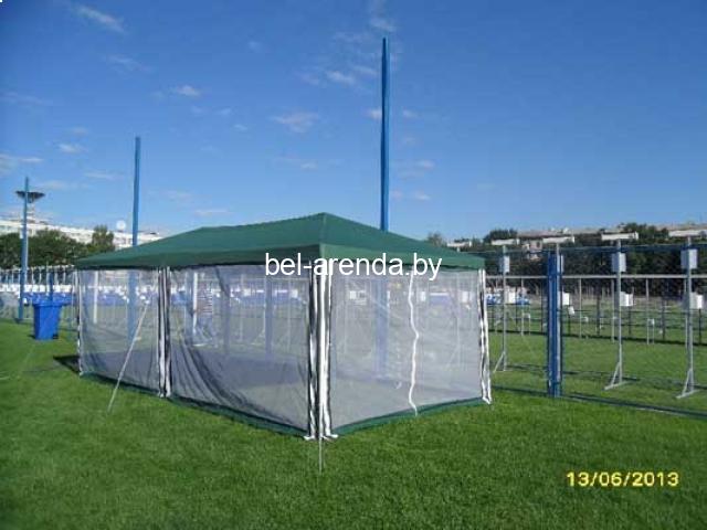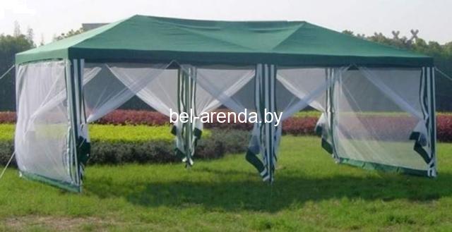 Описание: Идеальный вариант для отдыха на даче или на природе со всей семьей или дружеской компанией! Основное назначение этого шатра-навеса – защита от жаркого солнца. Но, кроме этого, он отлично оберегает от назойливых насекомых или дождя, работая как надежный зонтик. Материал, из которого изготовлен этот шатер, представляет собой полиэстер. Сверху он покрыт специальным составом, благодаря которому вода легко стекает с крыши шатра.Каркас навеса собирается за несколько минут из металлических трубок. Габариты, которыми обладает шатер следующие: длина - 6 метров, ширина – 3 метра, уровень высоты составляет 2,5 метра. Общая площадь, которую покрывает этот шатер, равна 18-ти квадратным метрам. Для того чтобы вам было максимально удобно отдыхать под их сводами они комплектуются надежной москитной сеткой, которая закрывает вход и не позволяет насекомым нарушить ваш покой. Шатер идеально подходит для застолий на природе, семейного отдыха, приготовления пищи. На его 18-ти квадратных метрах размещается отличная столовая. В собранном виде весит 25 килограммов и имеет длину 118 сантиметров.