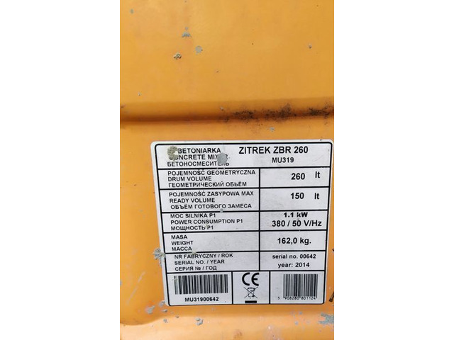 Бетономешалка Zitrek zbr 260. Аренда Орша.
