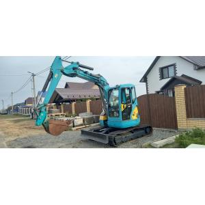 Услуги мини-экскаватора, город и район. Глубина копания 4 метра. Высота погрузки 4.7 метра. Монтаж канализационных колец 1.5 метра.